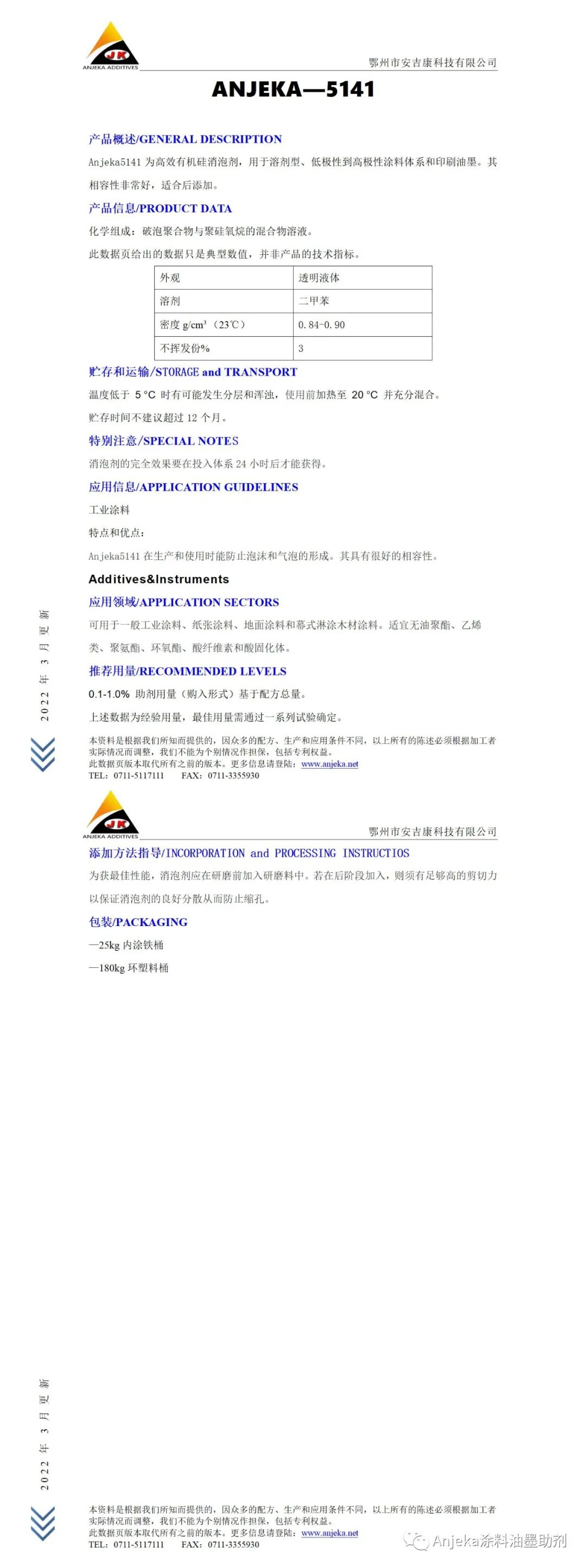 有機(jī)硅消泡劑廠家木器漆/家具漆涂料消泡劑ANJEKA5141替代畢克BYK141助劑廠家