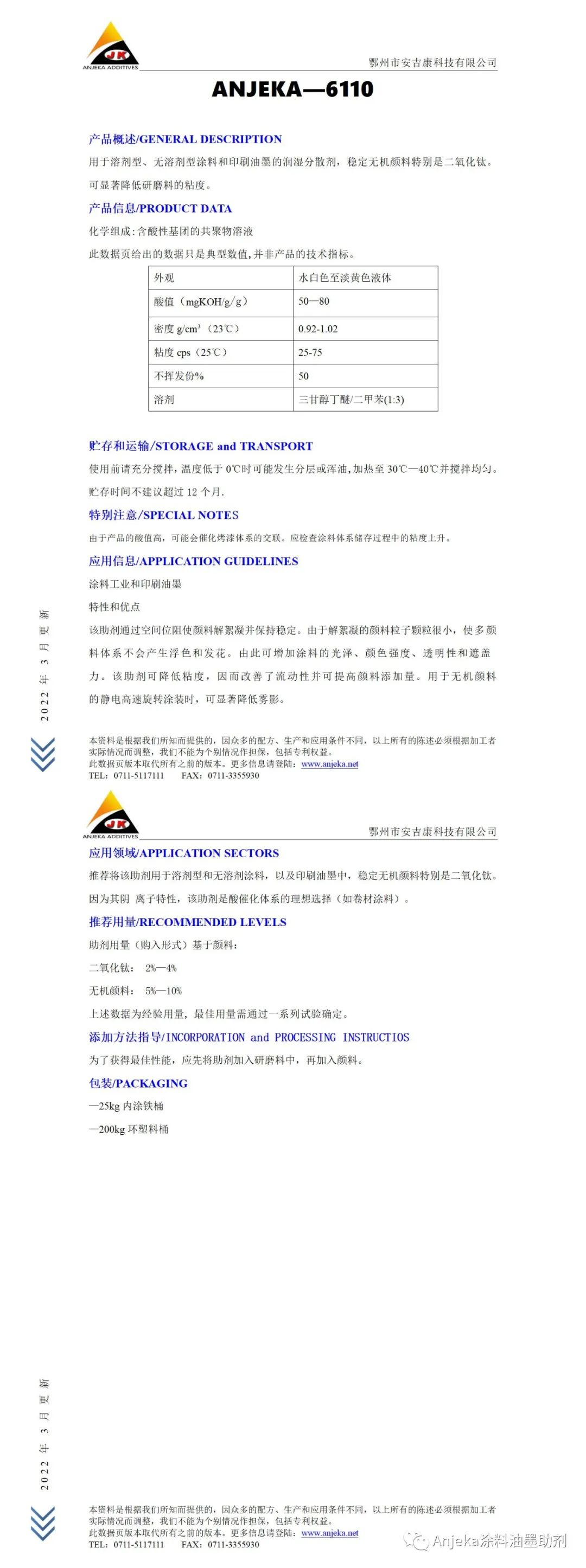 ANJEKA-6110地坪涂料助劑 對(duì)應(yīng)畢克BYK110分散劑防浮色發(fā)花提亮光澤,專業(yè)助劑廠家
