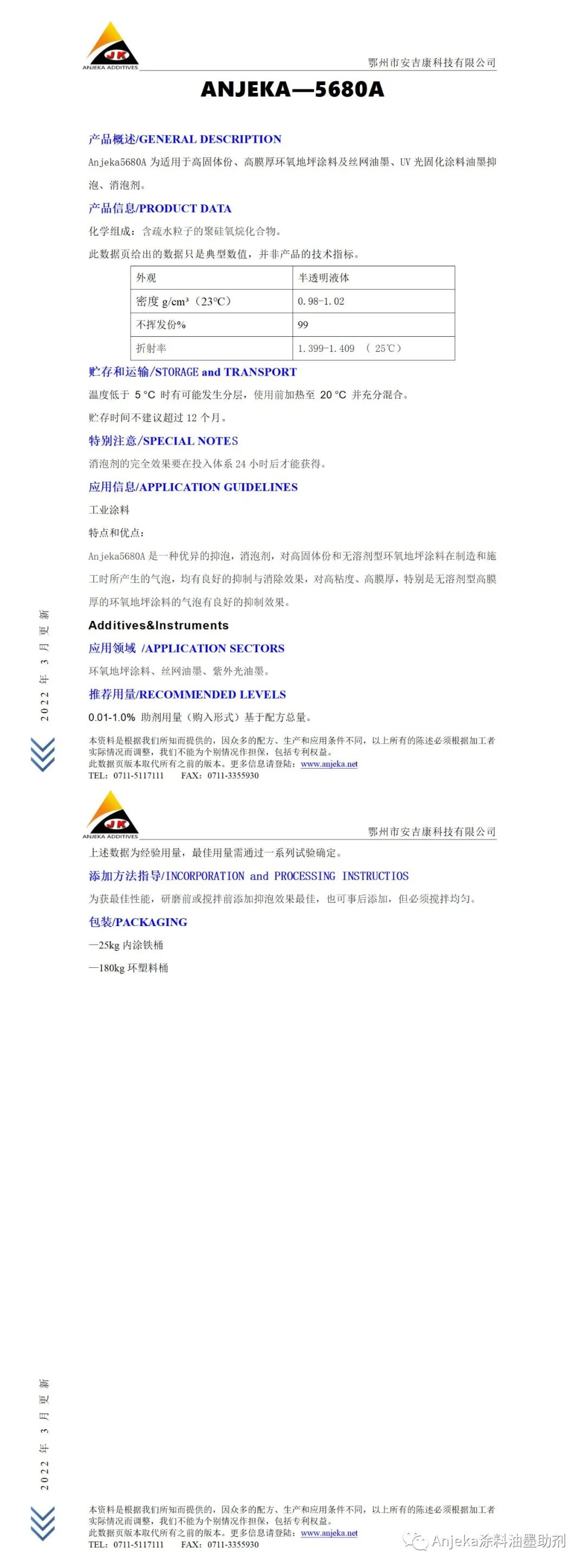 Anjeka-5680A有機(jī)硅消泡劑 替代德謙6800、BYK1799 適用于環(huán)氧 地坪漆消泡劑