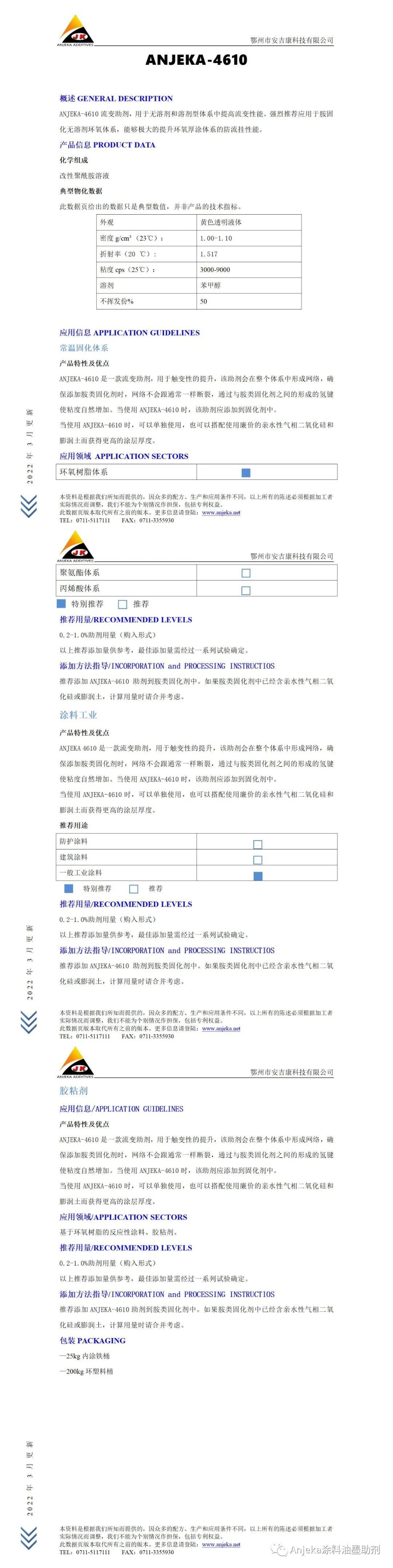 液態(tài)觸變劑ANJEKA4610替代畢克BYK607 油墨 涂料助劑
