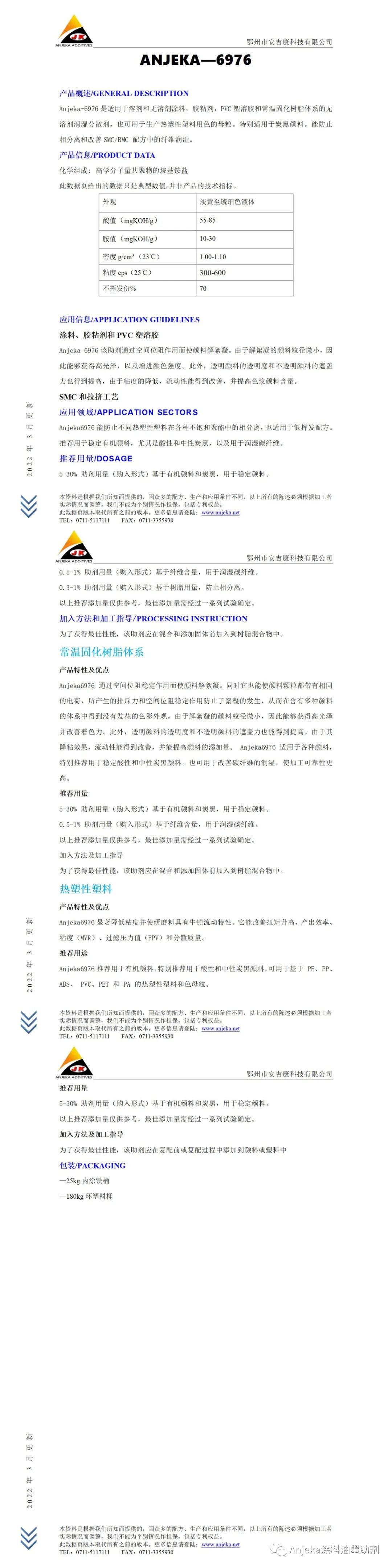 安吉康6976相分離助劑可替代BYK9076 用于溶劑和無溶劑涂料膠粘劑