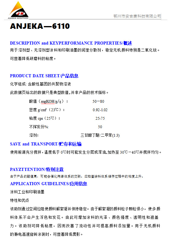 分散劑ANJEKA6110等同畢克110穩(wěn)定無機(jī)顏料二氧化降低研磨料粘度