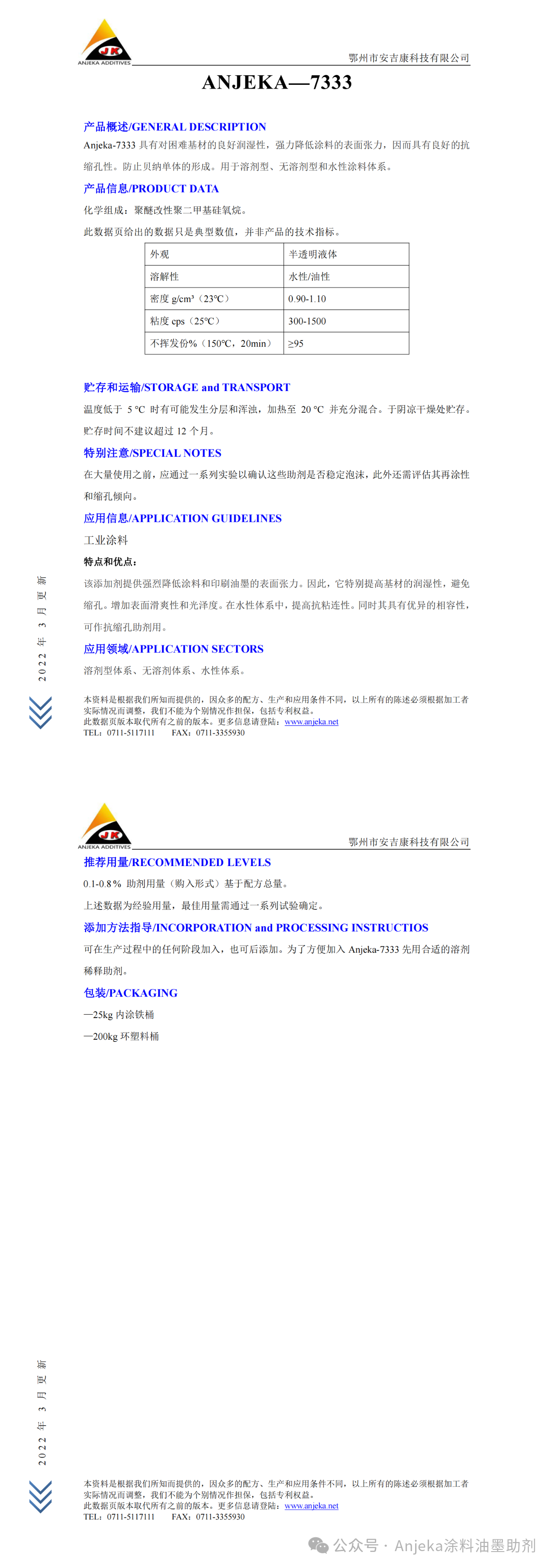 廠家Anjeka 7333潤(rùn)濕流平劑 替代BYK333提高基材潤(rùn)濕性避免縮孔