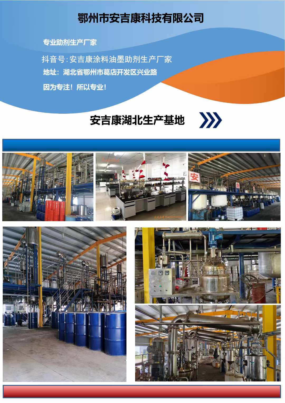 鄂州市安吉康科技有限公司致力于涂料、油墨、粘膠劑、皮革系列水性分散劑,高分子分散劑防沉劑,觸變劑等助劑應(yīng)用與科研工作,自成立以來,積極跟蹤國外新產(chǎn)品技術(shù)與應(yīng)用,并于中部美麗園林城市——鄂州市建立研發(fā)、生產(chǎn)機構(gòu),依托中部地區(qū)密集科教研發(fā)群體優(yōu)勢,現(xiàn)已形成以聚氨脂、硅氧烷等為主導(dǎo)的界面控制添加劑各系列產(chǎn)品。